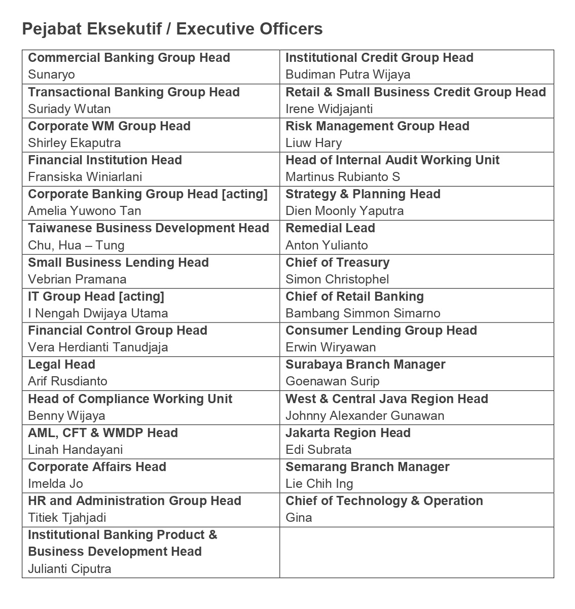 Pejabat Eksekutif | PT BANK CTBC INDONESIA